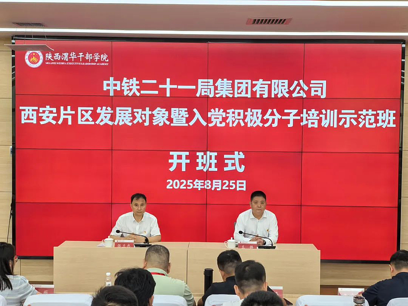8月24日-27日,中铁二十一局集团有限公司西安片区发展对象暨入党积极分子培训示范班在陕西渭华干部学院成功举办,承办方中铁二十一局集团路桥工程有限公司党委副书记、工会主席张兰忠出席开班式并讲话。来自中铁二十一局集团有限公司西安片区的发展对象和入党积极分子共计50人参加培训。
