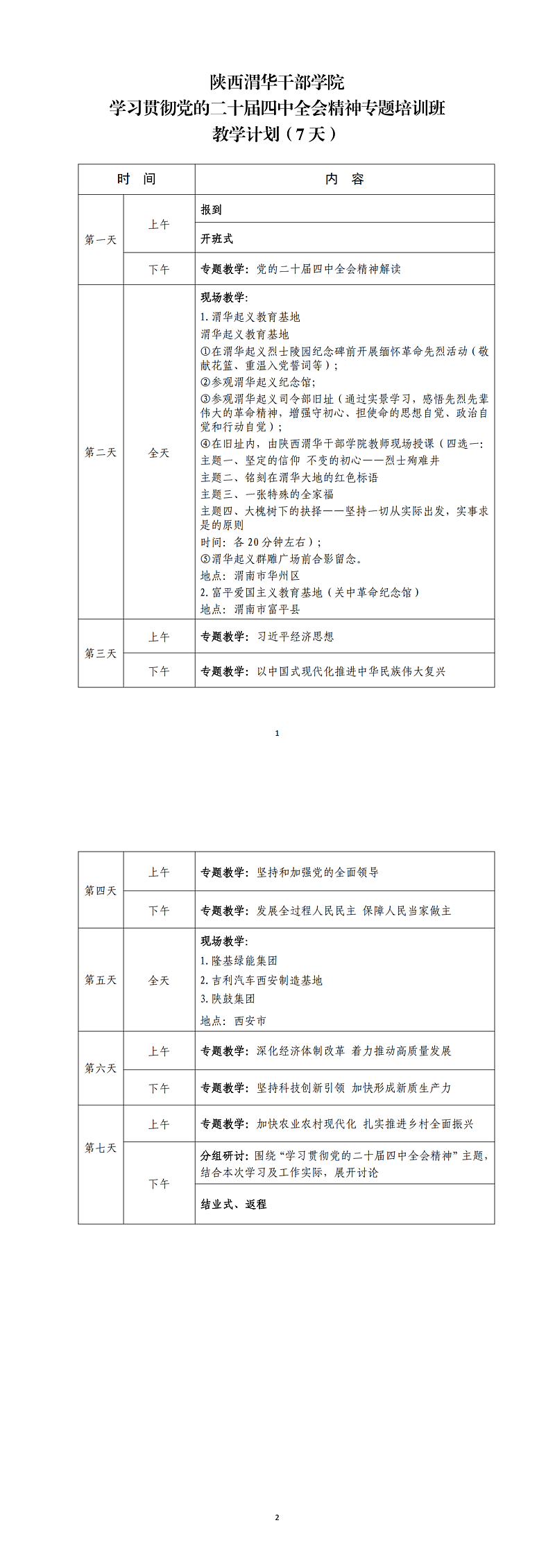 学习贯彻党的二十届四中全会精神专题培训班教学计划(7天)