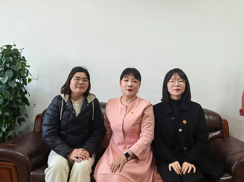 (图片中从左至右依次为:陕西渭华干部学院副教授张莉,渭华起义革命者钟师统孙女钟晓娟,陕西渭华干部学院教师曹思狮。)
