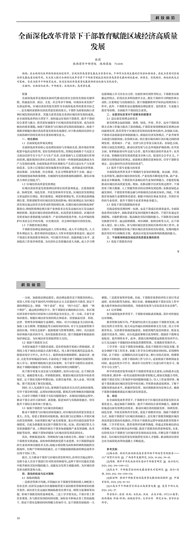 全面深化改革背景下干部教育赋能区域经济高质量发展