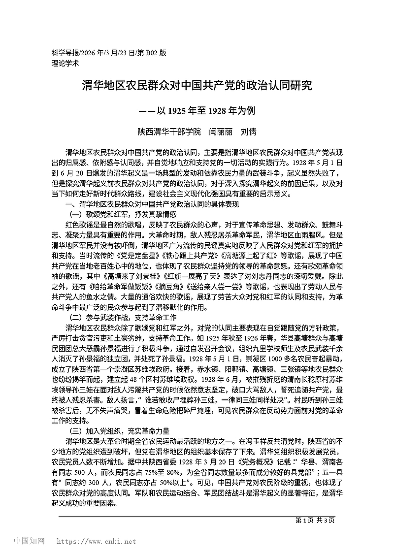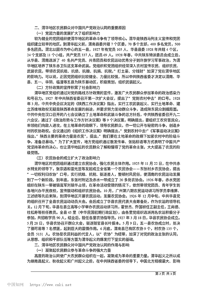 渭华地区农民群众对中国共产党的政治认同研究