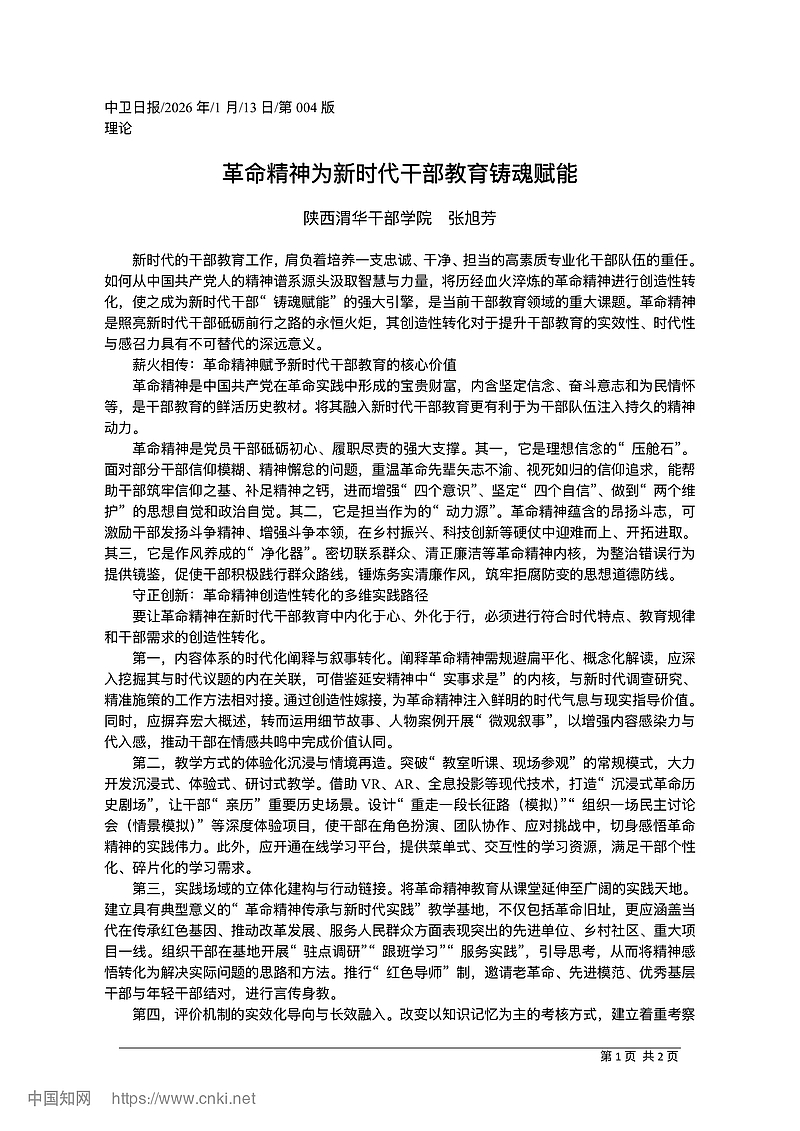 革命精神为新时代干部教育铸魂赋能