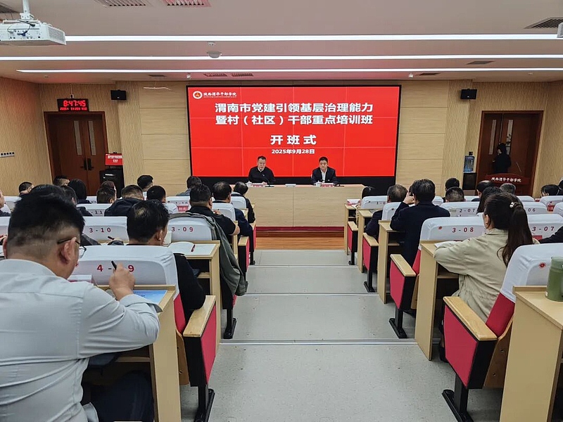 为全面推动党建引领基层治理工作全面发展,切实提升基层干部能力素质,9月27日-30日,渭南市党建引领基层治理能力提升暨村(社区)干部重点培训班在陕西渭华干部学院成功举办。陕西渭华干部学院党委委员、副院长王锋致欢迎辞,渭南市委社会工作部副部长、市委两新工委副书记苑烨作动员讲话。来自渭南市各村(社区)党组织书记、村(居)委会主任,以及各县(市、区)基层治理工作负责同志共计63人参加此次培训。